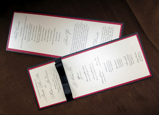 As you may remember, a few months ago i posted some pics of Jacquelyn and Michael's wedding items-- their "samples" before i went into production mode, and then their invitation suite! Well, now i am happy to report that the remainder of their items are complete.